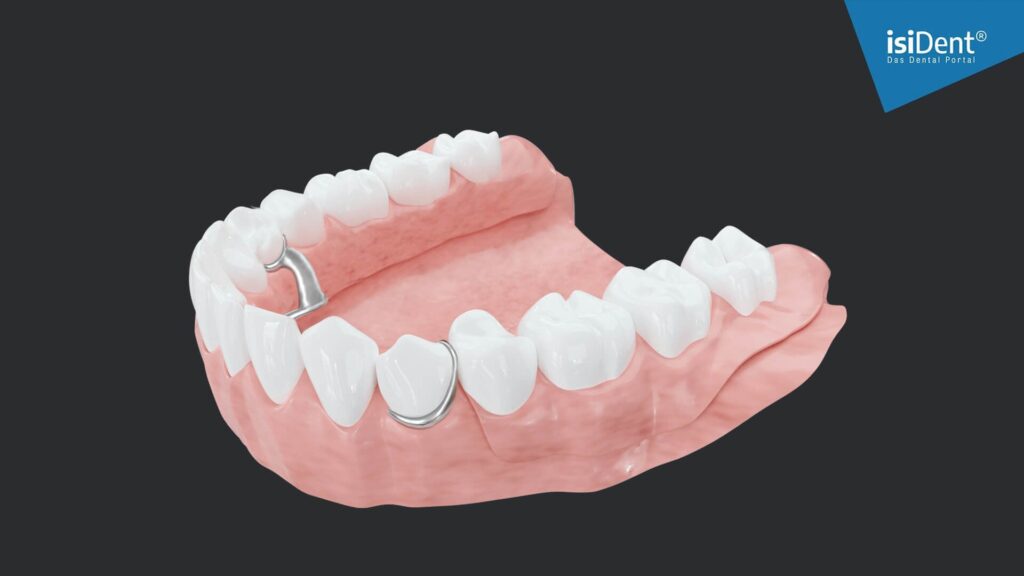 Die Modellgussprothese ist eine bewährte Methode zur Versorgung bei Verlust mehrerer Zähne. Diese Teilprothese ist herausnehmbar und wird durch Klammern an den verbliebenen natürlichen Zähnen befestigt. Die Zahnlücken werden durch zahnfleischfarbene Prothesensättel mit den Ersatzzähnen ausgefüllt.